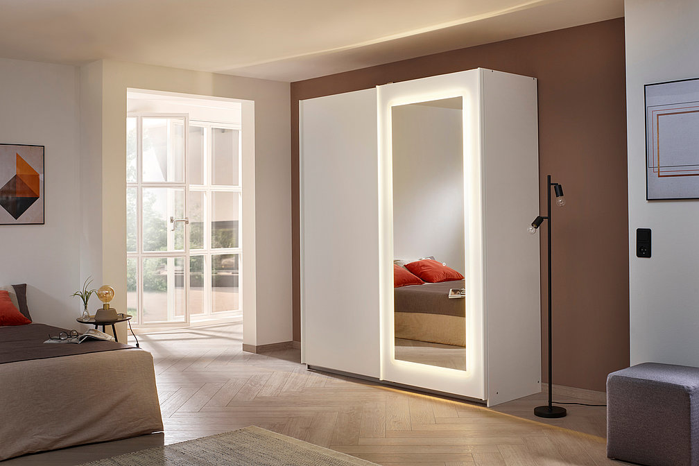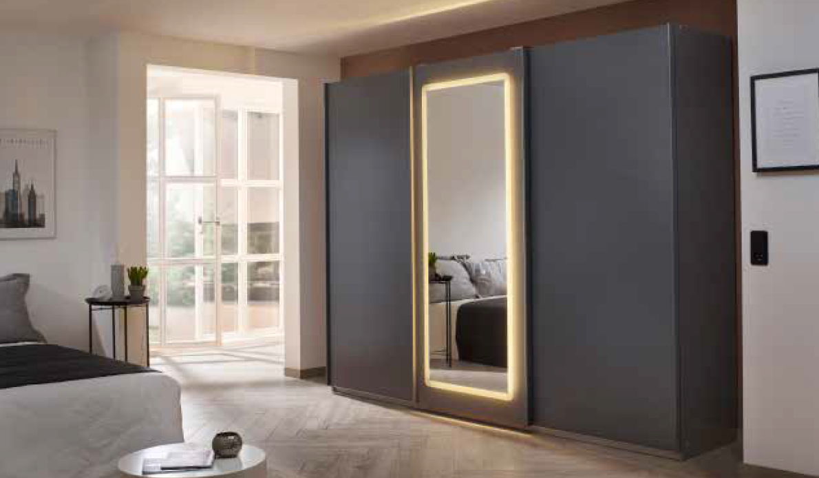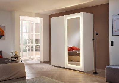 Választható szélességi méretek: 181 cm, két tolóajtó világító tükörrel.
