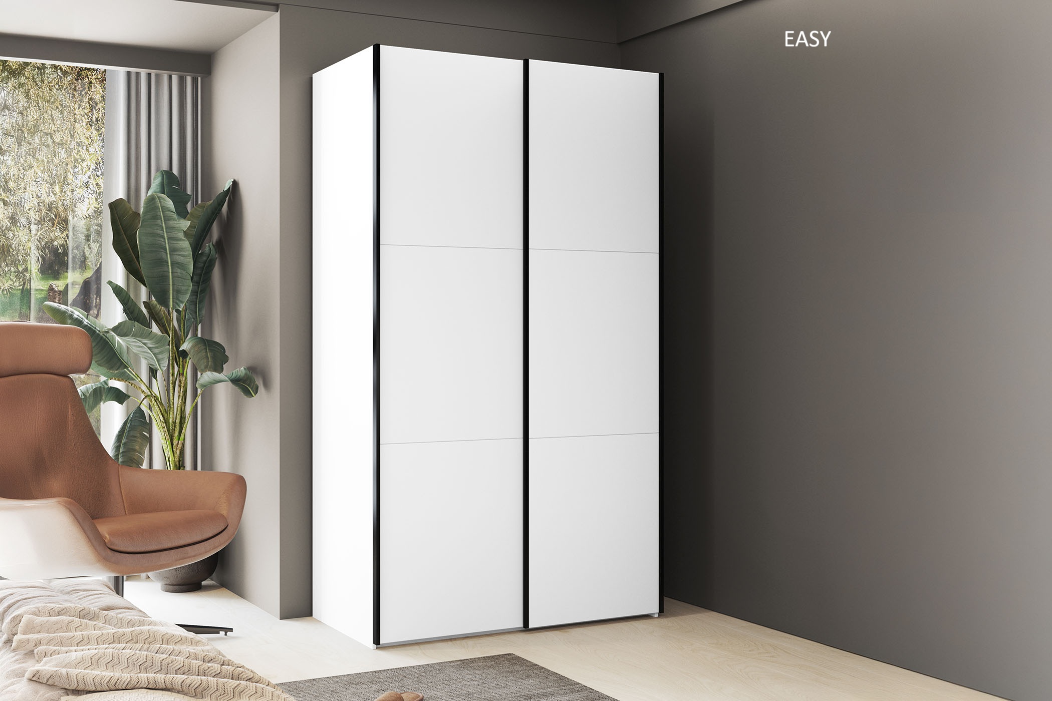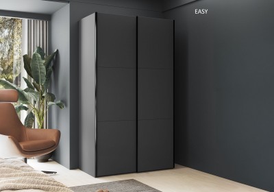 Easy tolóajtós gardrób 120 cm szélességben készül, matt fehér, wotan tölgy és fekete színben.