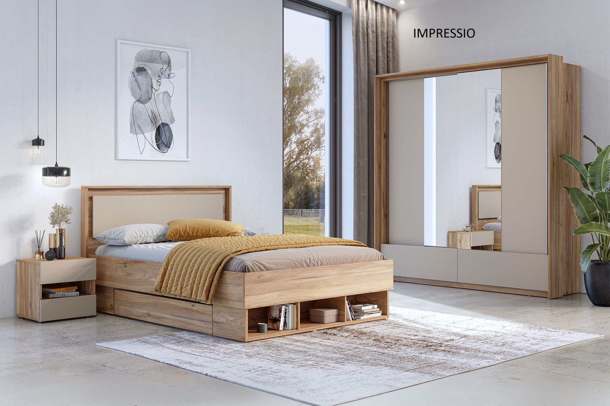 Gardrób szekrények kiegészíthetőek franciaággyal, éjjeliszekrénnyel vagy akár komóddal is.