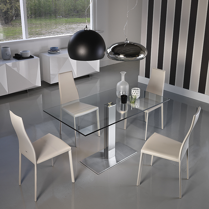 Az asztallap 15 mm vastag tiszta üveg.