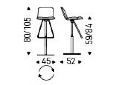Forgó bárszék, állítható magasággal, szatén rozsdamentes acél alappal, lábtartó és a mozgó rész krómozott acél, vagy
