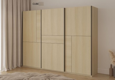 Cube tolóajtós gardrób 2 és 3 ajtós, 120 cm és 270 cm szélességben, kaschmir-congo és lindberg tölgy színekben készül.