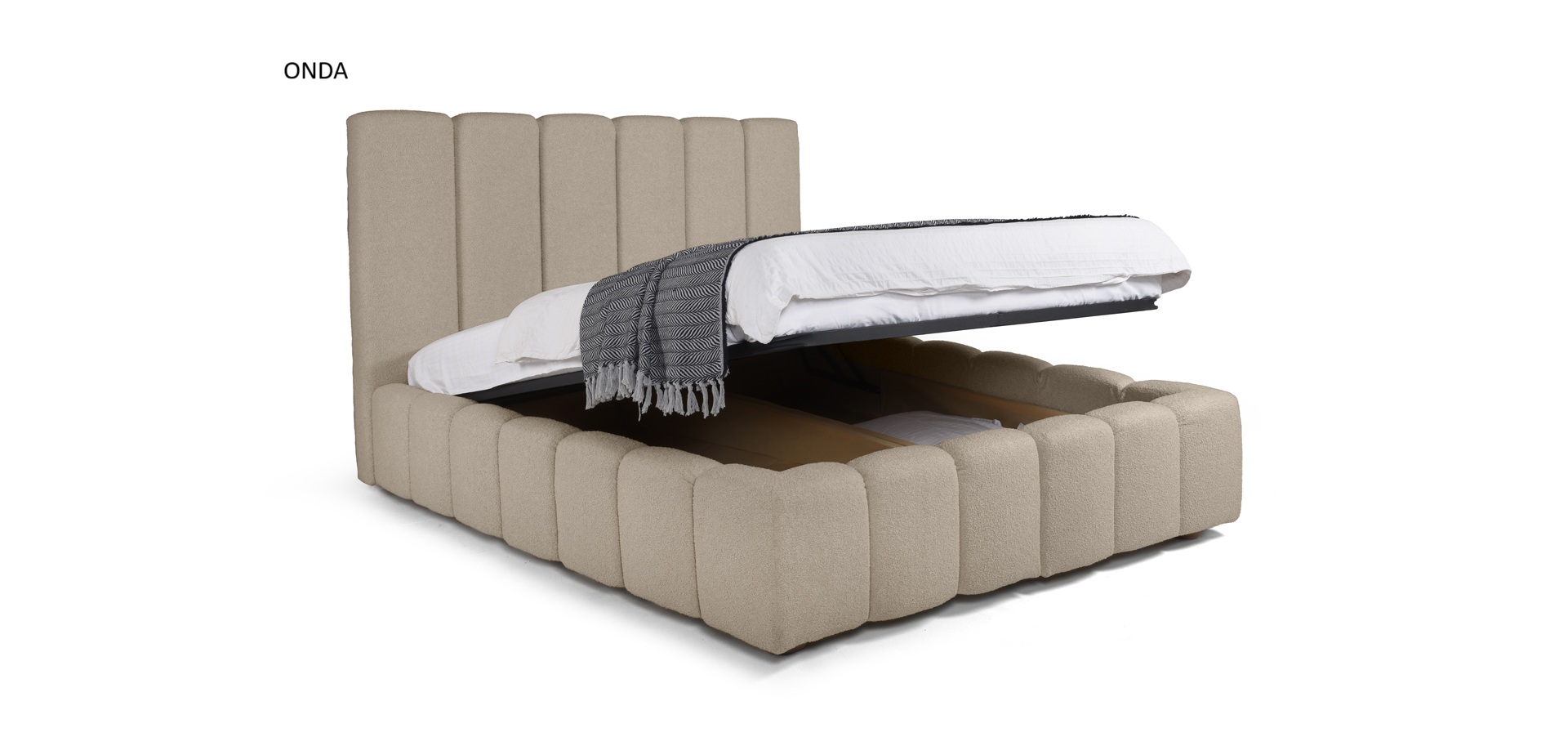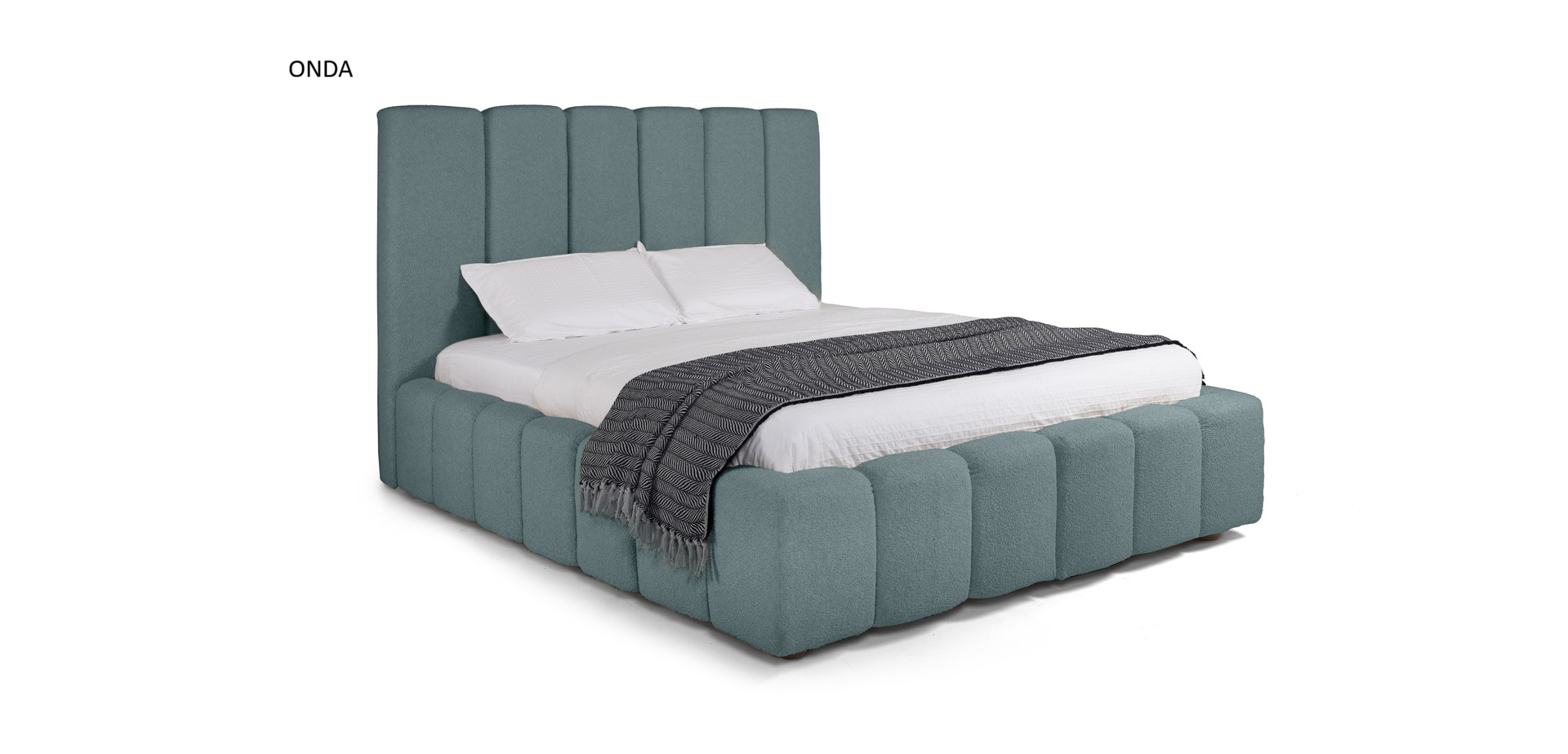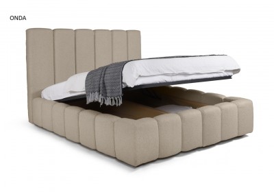 Onda ágy két méretű fekvőfelületben elérhető, bevonó kárpit választási lehetősséggel: 160x200 és 180x200 cm. A fejvég 130 cm magas.