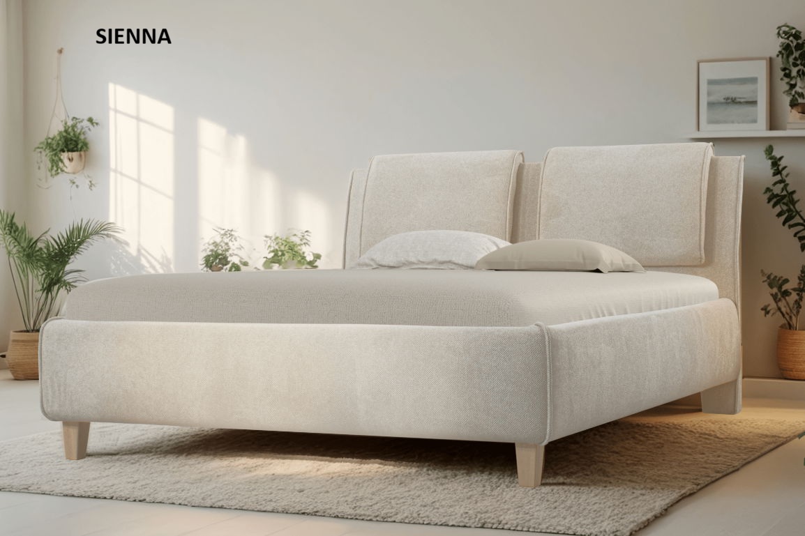 A Sienna modell finoman kidolgozott kédervarrása a fejvégen és az ágytesten is megjelenik, kifinomult esztétikát kölcsönözve a bútornak. Az erősen texturált buklé szövet nemcsak modern és letisztult megjelenést biztosít, hanem izgalmas felületi játékot is ad az ágy karakterének. Választható fekvőfelületek méretei 160x200 és 180x200 cm, ágybetét-matrac felépítése, tulajdonságai szintén választhatók.