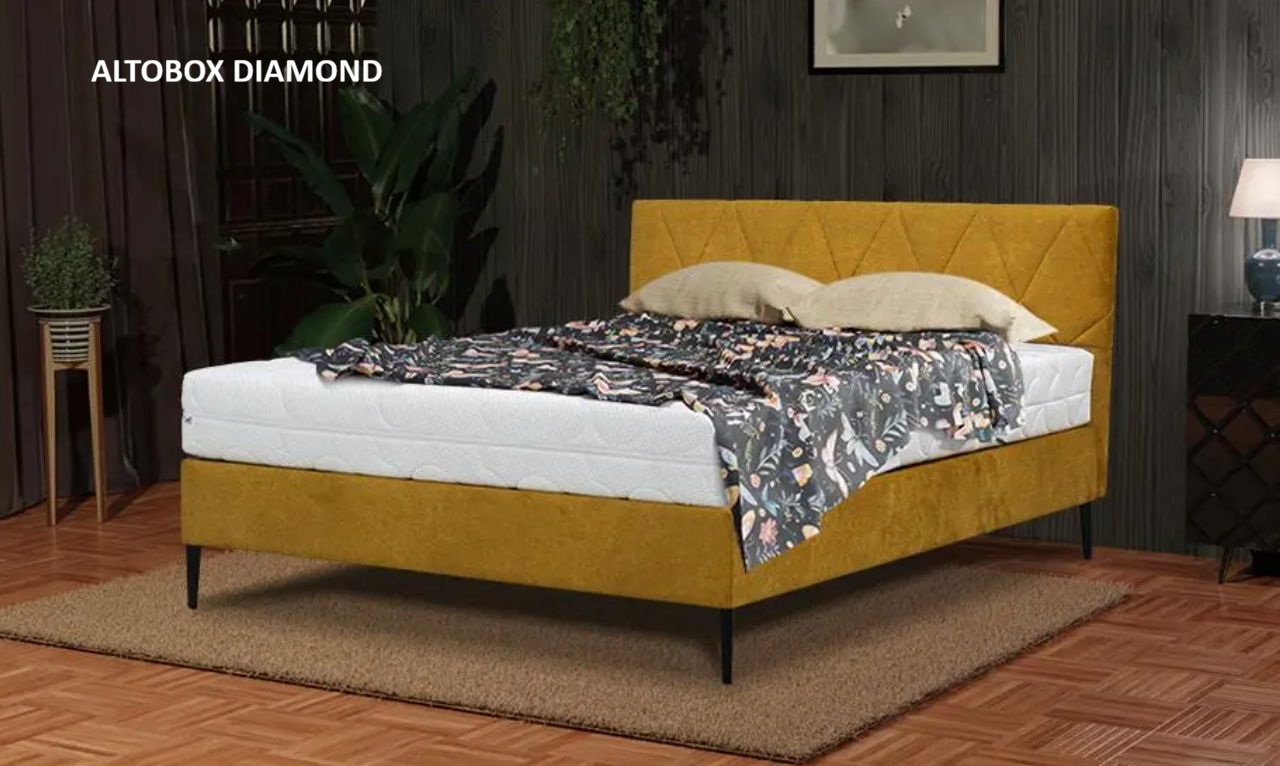 Az Altobox modellhez több karakteres fejvég választható, mint például az Amber, Diamond, és Opal. Mindegyik típust a finoman ívelt formák és a puha, lágy habozás jellemzi, amelyek melegséget és vizuális otthonosságot sugároznak. A fejvégek kialakítása nem csak esztétikai, de kényelmi szempontból is kiemelkedő, tökéletesen támasztják meg a hátat olvasás vagy pihenés közben. A gondosan kialakított varrások és a választható szövetek még tovább fokozzák a modell egyediségét. Választható fekvőfelületek méretei 160x200 és 180x200 cm, ágybetét-matrac felépítése, tulajdonságai szintén választhatók.