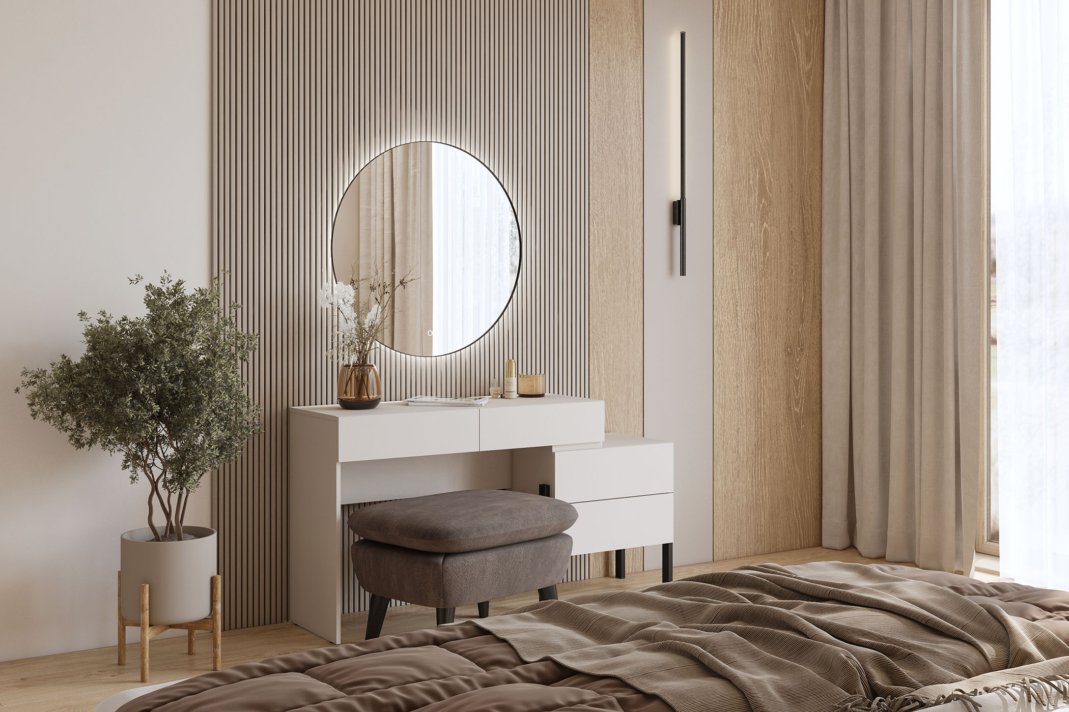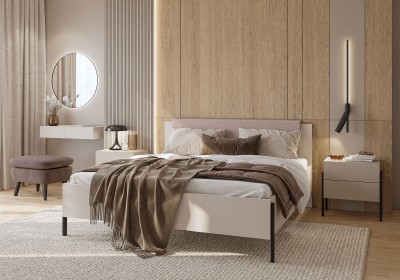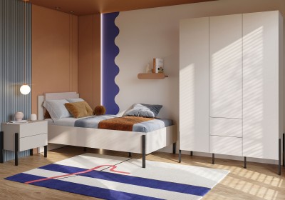 A JUKON ideális nappali szobákba, hálószobákba és ifjúsági szobákba egyaránt. A kasmír tónus a karcsú fekete lábakkal kombinálva stílusos kontrasztot teremt, amely vizuális könnyedséget és kifinomultságot kölcsönöz a belső térnek. Elérhető elemek ifjúsági szobákba: egyszemélyes ágy, kétszemélyes ágy, tároló gardrób, polcos komód, fiókos komód, íróasztal, fali asztal tükörrel.