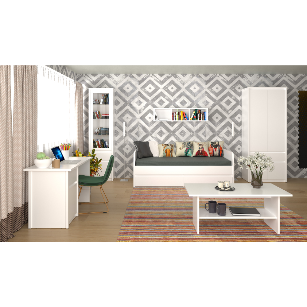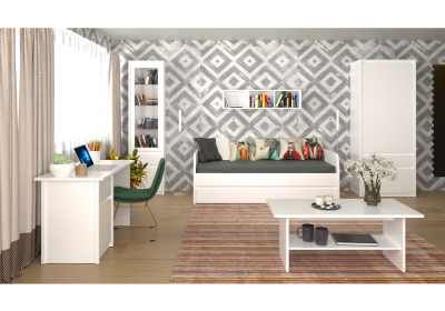 Az elegáns ERODIN bútorkészlet semleges fehér színben tündököl. A fehér bútorok otthonában elegáns és tiszta megjelenést keltenek. A fehér szín tökéletesen feldobja a helyiséget.