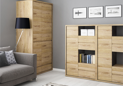 A SHELDON kollekció egy ízlésesen megtervezett bútorcsalád, amely ideális a nappaliba, az étkezőbe, a diákszobába és más helyiségekbe.