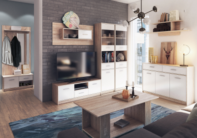 A Teyo elemesen variállható bútorcsalád az ifjúságiszobán kívül nappali berendezésére is alkalmas, a Sonoma tölgy dekor felület kiegészíthető fehér fronttal is.