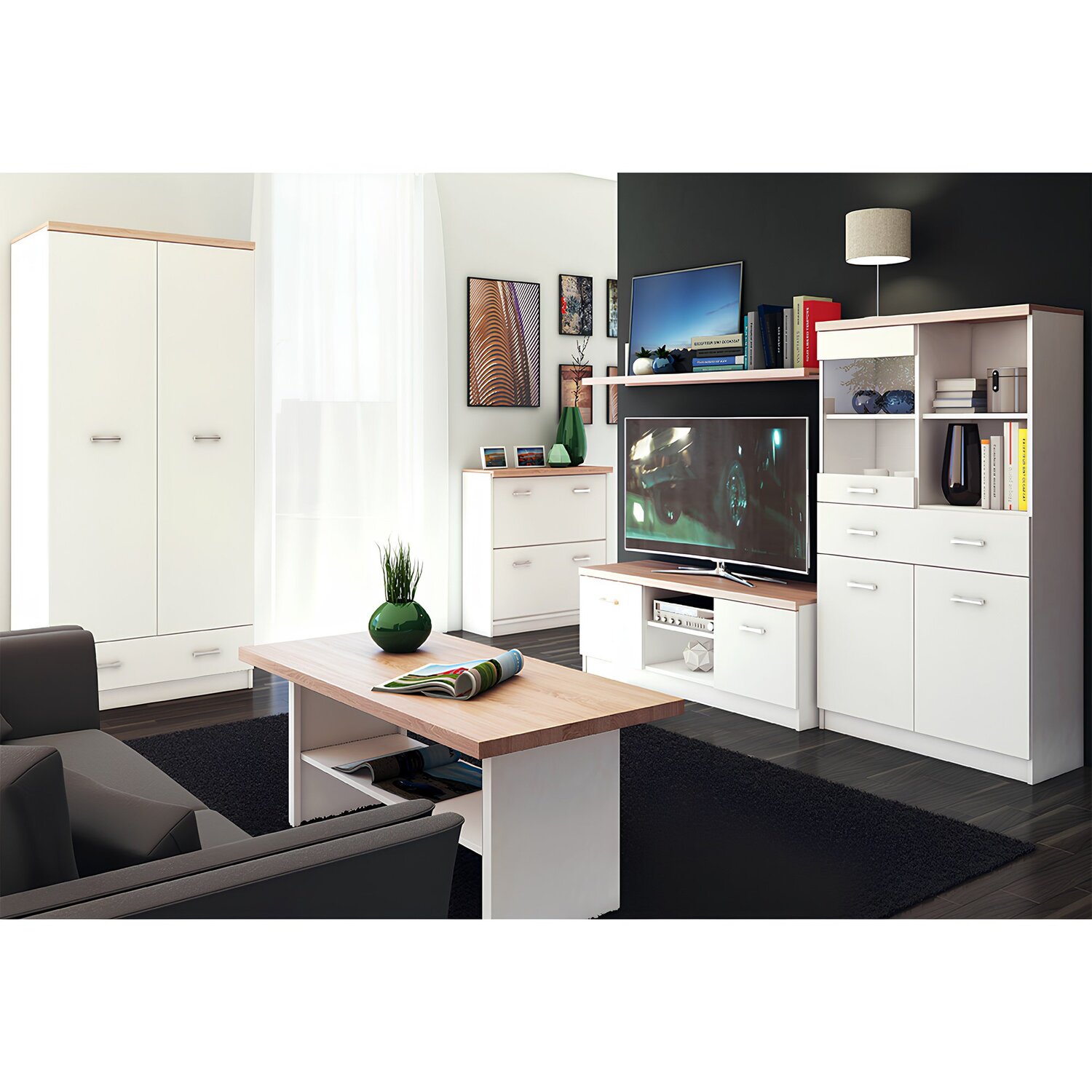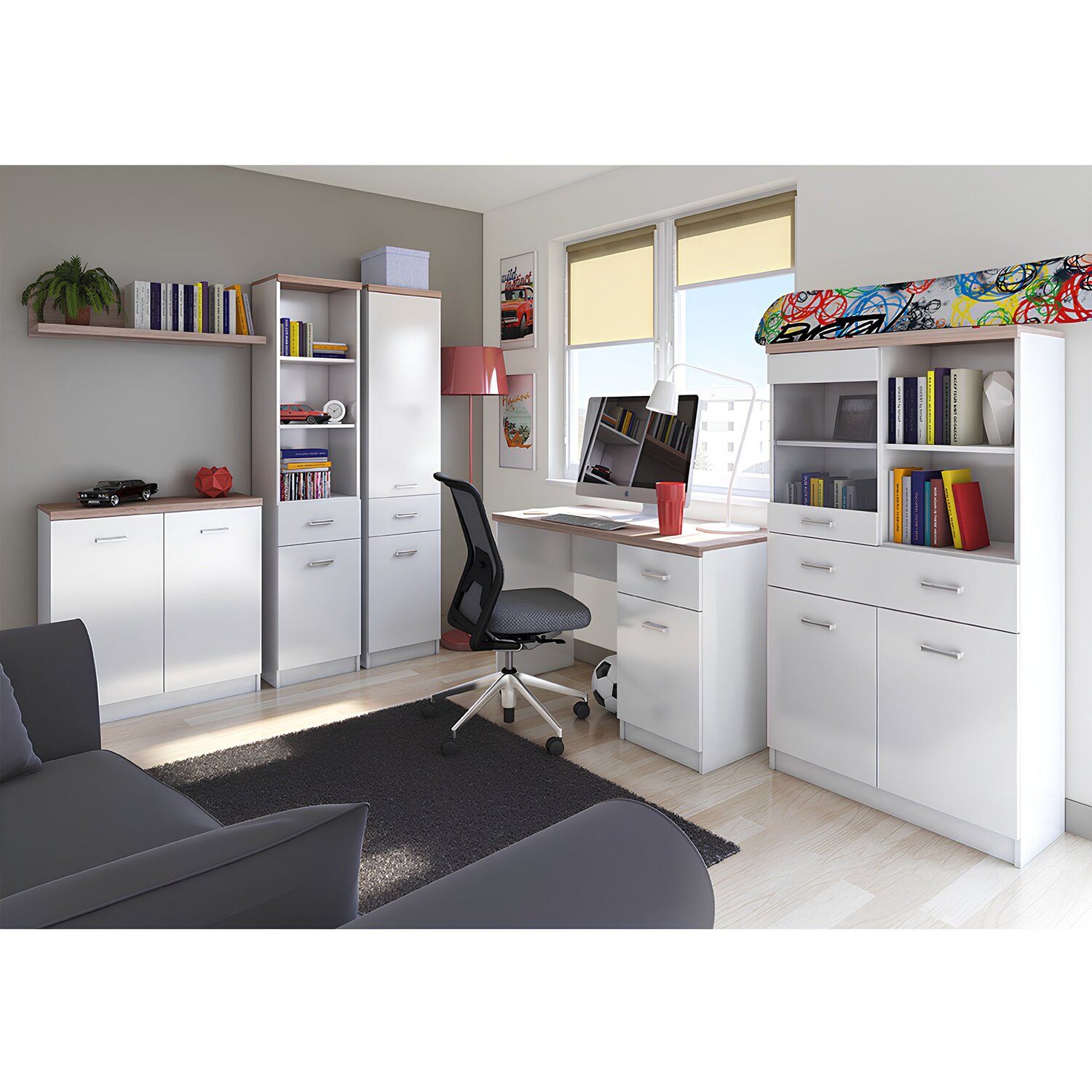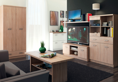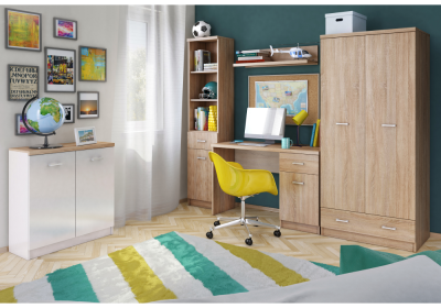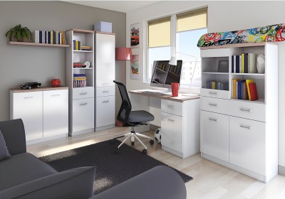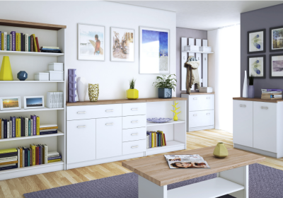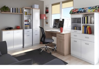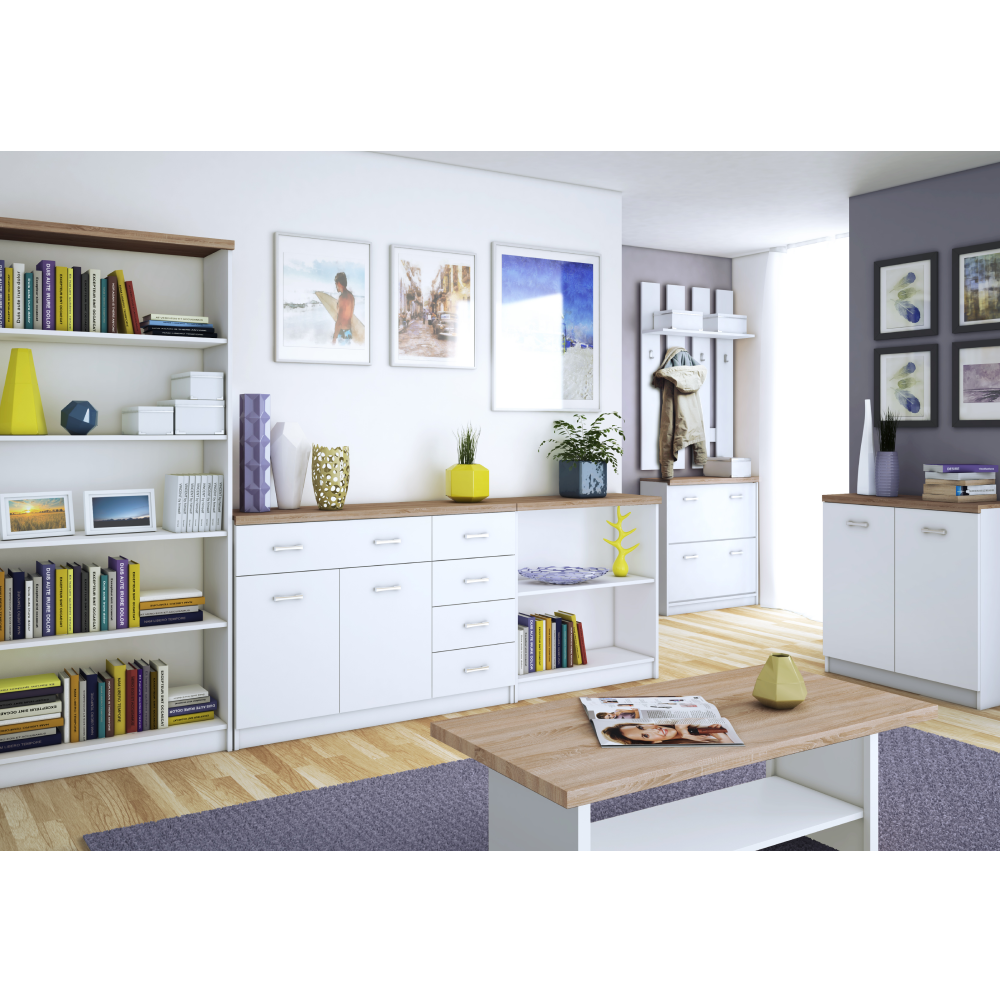A TOPTY, amelyből összeállíthat egy nappali vagy diákszobát, étkezőt, öltözőt vagy akár egy dolgozószobát is, sonoma tölgy vagy fehér dekor felülettel.