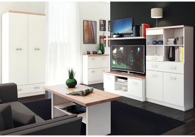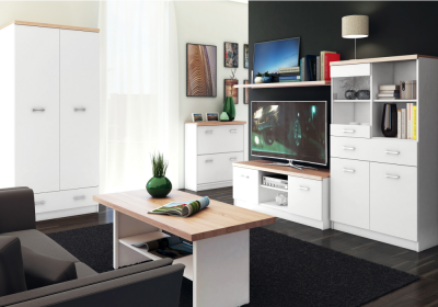 Elérhető elemek: akasztós szekrény, nyitott polcos szekrény, polcos szekrény, komód, cipő tároló, fali fogas, PC/íróasztal, vitrin, ágy, dohányzóasztal.